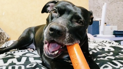 Питбуль и резиновая игрушка.