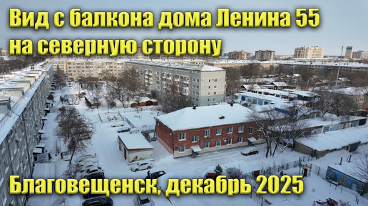 Вид с балкона дома Ленина 55. Благовещенск. Декабрь 2025. Вид на северную сторону