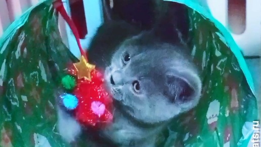 Скоро Новый Год. И котята получили в подарок новогодний туннель для игр