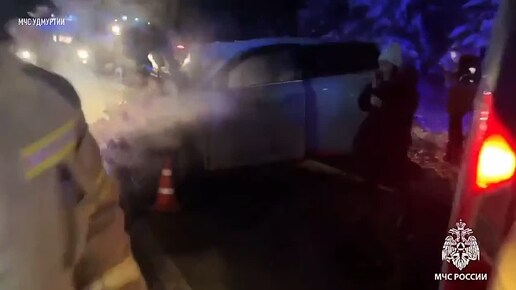 Школьный микроавтобус столкнулся с легковушкой в Удмуртии