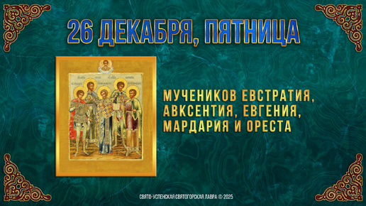 Мучеников Евстратия, Авксентия, Евгения, Мардария и Ореста. 26 декабря 2025 г.