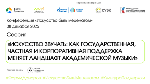 Сессия «Искусство звучать: как государственная, частная и корпоративная поддержка меняет ландшафт академической музыки»