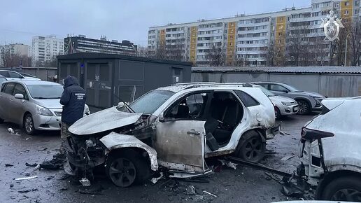 Первые кадры с места взрыва автомобиля генерал-майора Сарварова