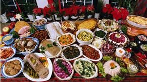 Рождественский шведский стол, селёдка рекой, ветчина горами, эх, сюда бы водочки!
