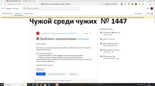 Чужой среди чужих [2025 Год.] № 1447.YouTube: Проблемы с загрузкой видео.