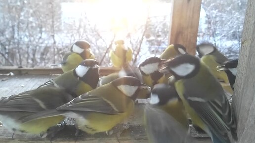 Синички кушают шинковку. Вторая часть.
