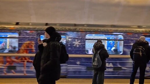 Украшенный к Новому году поезд «Номерной» на Замоскворецкой линии метро