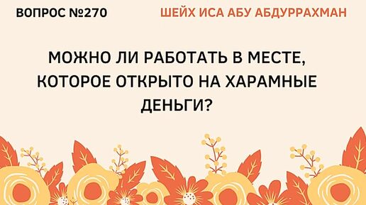 270. Можно ли работать в месте, которое открыто на харамные деньги Иса Абу Абдуррахман