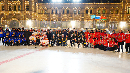 Спасатели из Беларуси, Казахстана и России сыграли в хоккей у стен Кремля