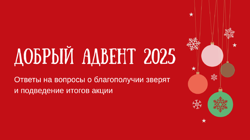 Ответы на вопросы о благополучии зверят + итоги Доброго Адвента 2025