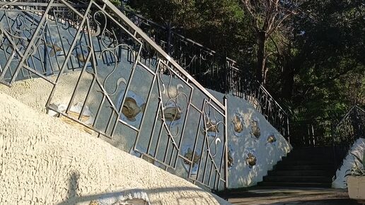 Прогулки по любимому Адлеру: золотые рыбки на каскадной лестнице у санатория "Изумруд". Идем от санатория на пляж "Моне". Декабрь 2025.