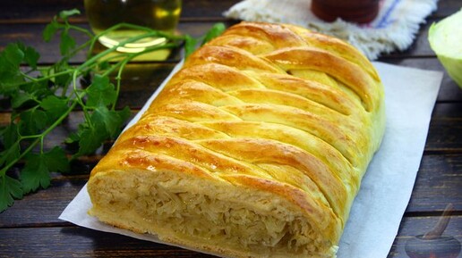 На первый взгляд простой, а на деле – особенный. Пирог-плетёнка с капустой