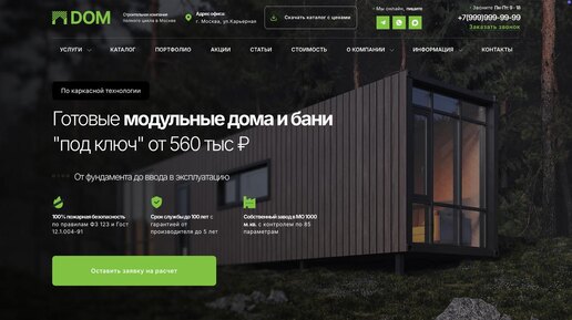 Строительство модульных домов и бань — шаблон готового сайта на WordPress