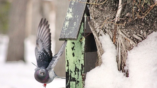 Голуби яростно съедают семечки, чуть не столкнув камеру