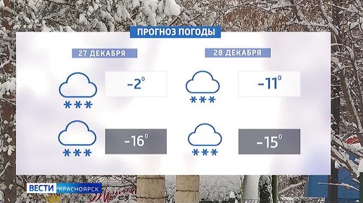 Предновогодние выходные в Красноярске будут снежными и морозными
