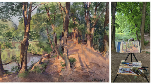 20250602 Пруд усадьбы Ясенево. Пленэр Акварель