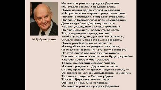 4+. «Мы начали рынок с продажи Державы…» Стихотворение Николая Добронравова