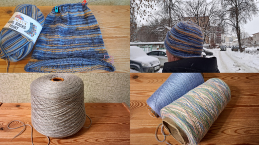 Из носочной пряжи связала спицами двойную шапку!Купила бобиную пряжу.27.12.25год.Уфа.