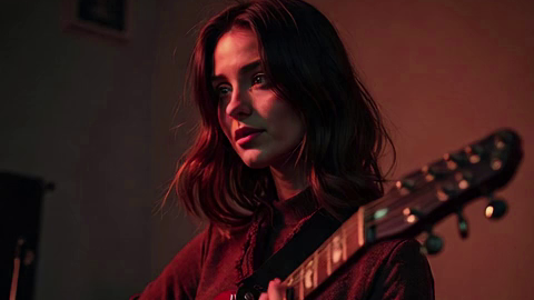 Девушка с электрогитарой, песни про ресторан. Сгенерированное видео