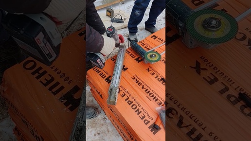 Направляющие для резки фасадного пенопласта на строительной площадке. Уголок 10х15мм с отверстиями