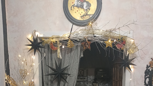 Чёрный цвет в новогоднем декоре. Инсталляция из веток и ёлочных игрушек.