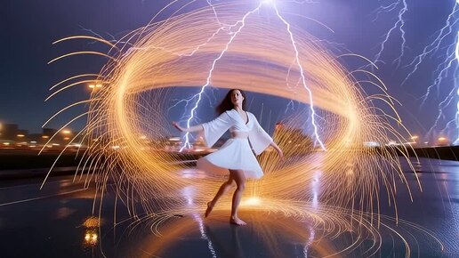 Танец ночи: молния над мокрым асфальтом ⚡️🌙