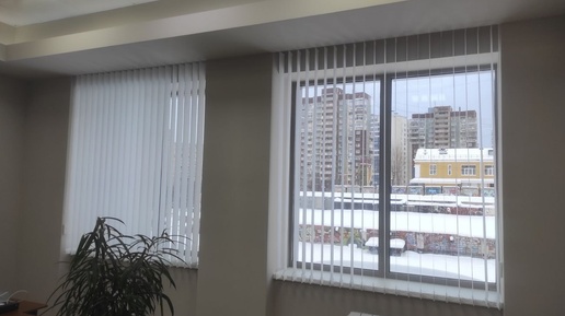 Белоснежные вертикальные жалюзи для поддержания профессиональной атмосферы и комфорта в офисе.