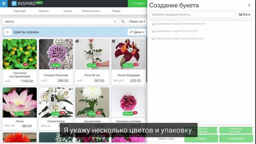 Создание букета в системе INSPIRO
