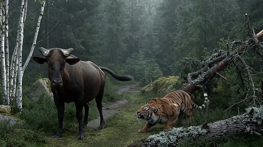 Гаур и тигр
