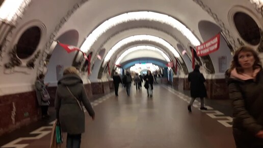 Санкт-Петербург. 70 лет Ленинградскому метро. Праздничные плакаты на станции Площадь Восстания.