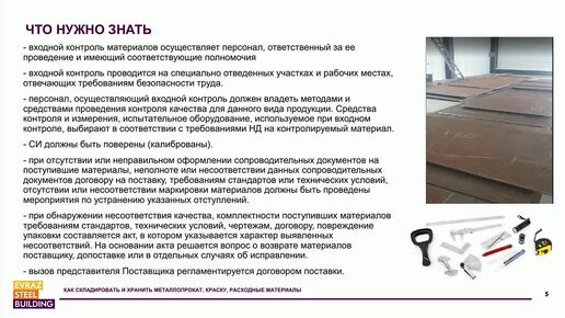 Вебинар “Верификация, складирование и хранение металлопроката, ЛКМ, сварочных и абразивных материалов”