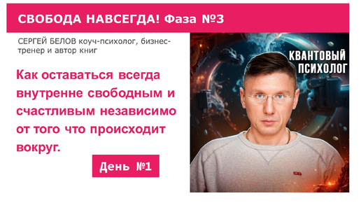 Свобода навсегда! Как оставаться спокойным внутри, вне зависимости от внешних обстоятельств. Часть №1 СЕРГЕЙ БЕЛОВ