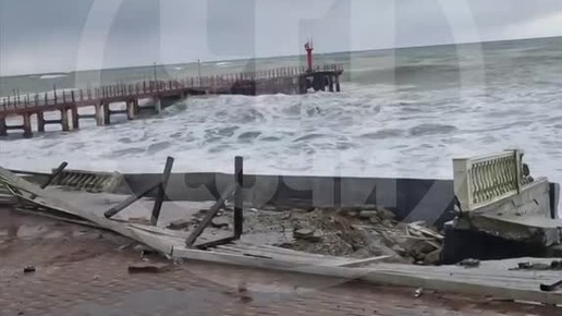 Сильный шторм в Сочи разрушает набережную Лоо