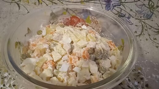 Оливье с яблоком и курицей.