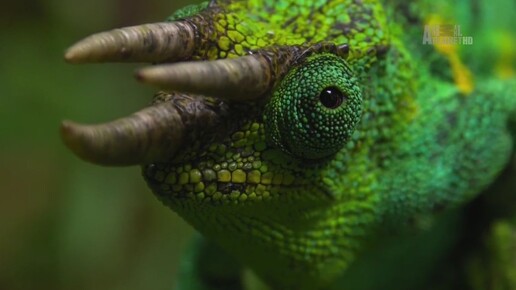 Трёхрогий хамелеон в горах Рувензори.