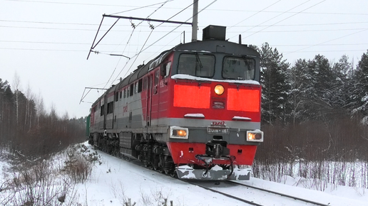 2ТЭ116К-1107 с одним полувагоном и приветливой бригадой