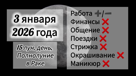 Лунный день 3 января 2026 года, Полнолуние, гороскоп дня