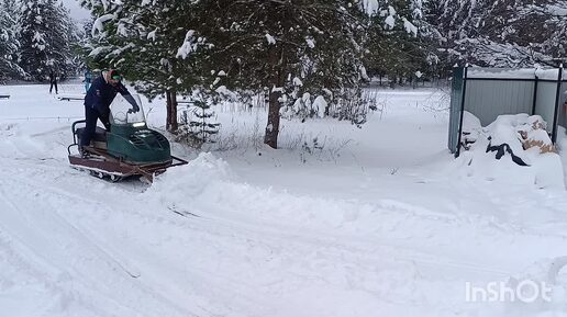 Работа самодельным отвалом на снегоходе Буран