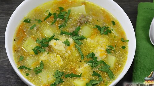 Густой, простой, сытный. Суп с фаршем и сырными клёцками
