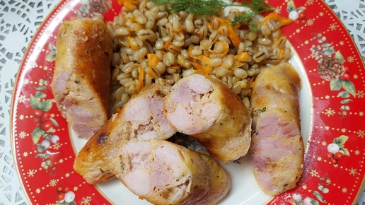 Домашняя колбаса из рубленного мяса свинины. Сочная, ароматная.