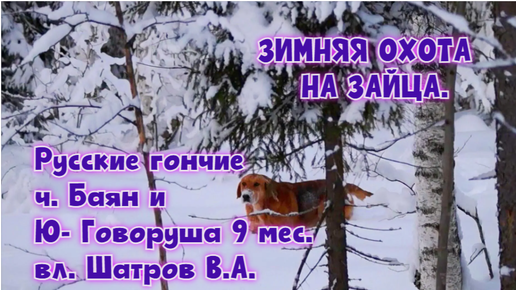 ЗИМНЯЯ ОХОТА НА ЗАЙЦА. Русские гончие ч. Баян и Ю- Говоруша 9 мес. вл. Шатров В.А.#ох#топ #hunting