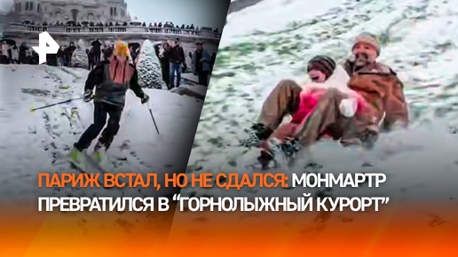 Снежный коллапс в Париже: французы ездят на лыжах и ватрушках со 130-метрового холма Монмартр