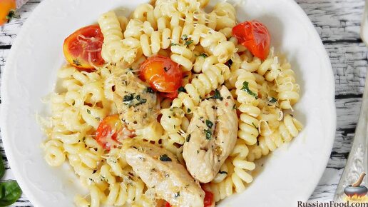 Невероятно вкусно! Паста с курицей, черри и сыром