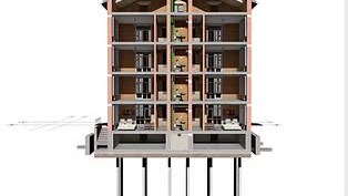Четырёхэтажный Г-образный дом на 19 квартир с лифтом. Тел_ +7-916-134-3630.