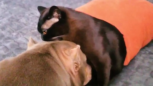 Булли и бурма. Диван объявлен территорией облизательного СПА на все рождественские каникулы. 🛋️👅😌