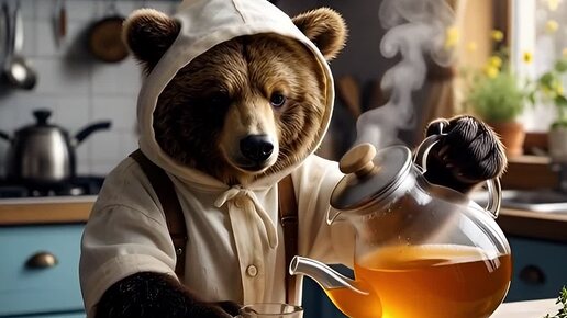 Мишка пьёт чаёк с медком