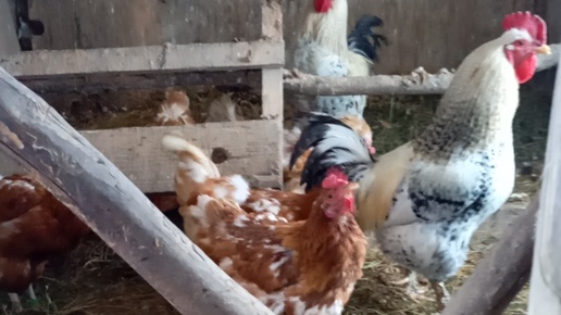 Обед птиц в курятнике зимой.