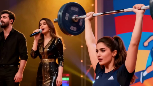 Сгенерированное видео. Спортсменка со штангой. Песня