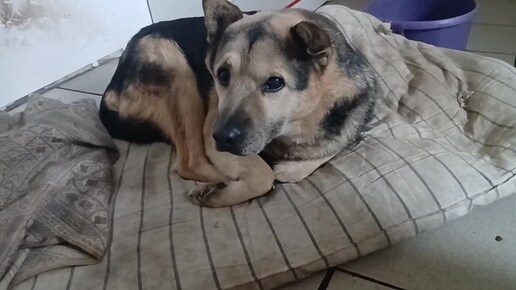Собачки в вет.блоке приюта. Старенький пёсик, лежит в тепле, окружен заботой, симпатичная белая собачка, рада общению с людьми.