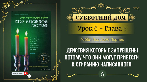 𝟲. Субботний Дом¹ | Действия которые запрещены потому что они могут привести к стиранию написанного | Раввин Лев Лейб Лернер